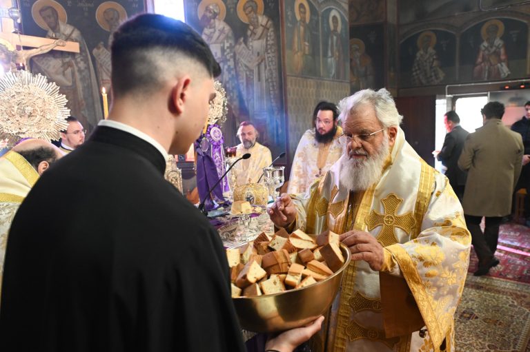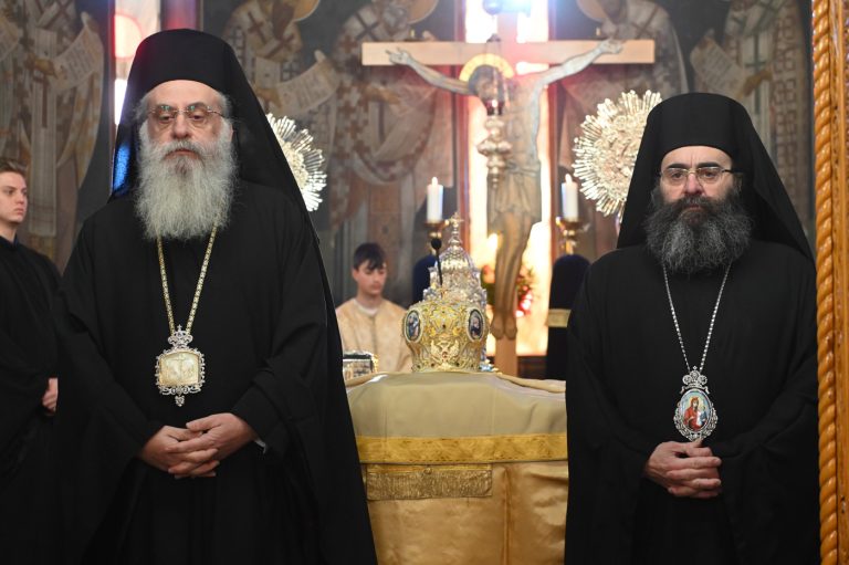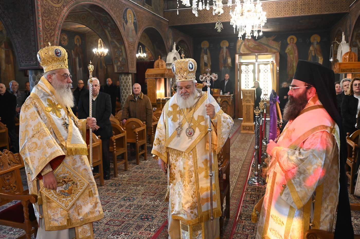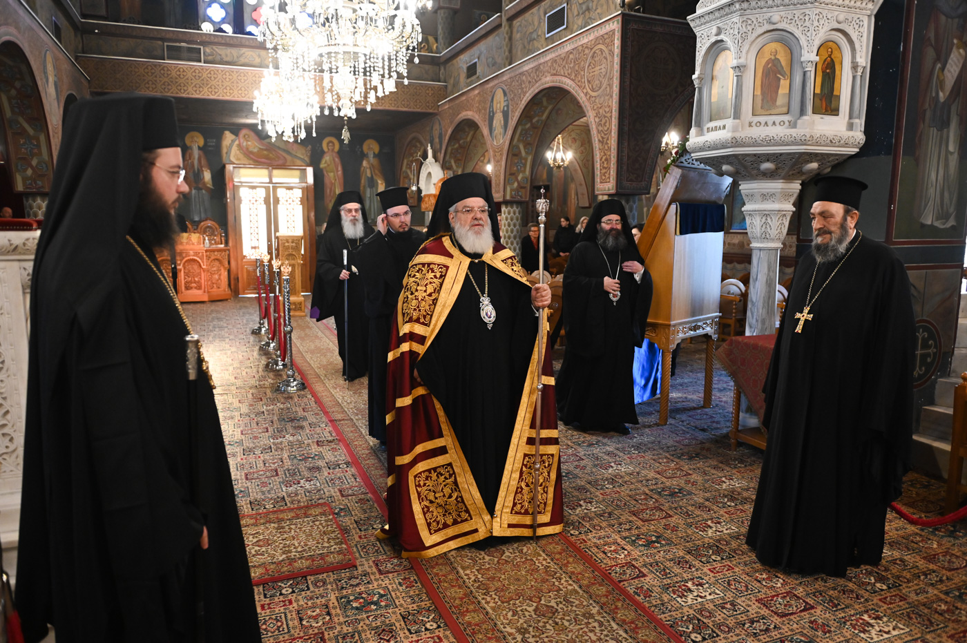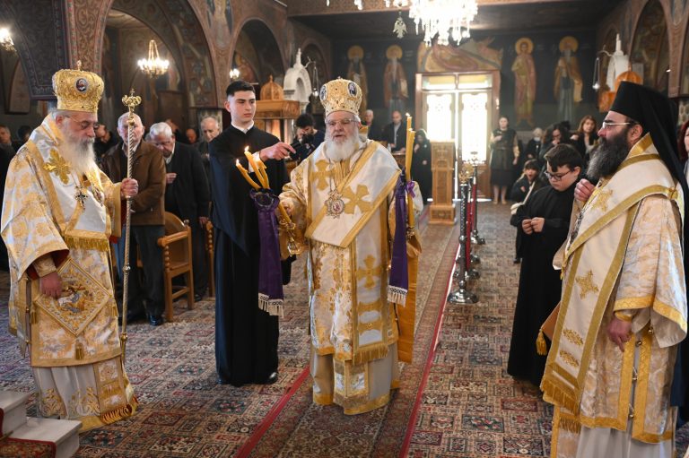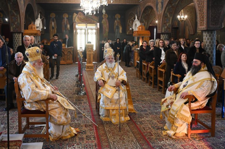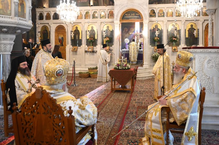 Κατά την Ακολουθία του Όρθρου και της Θείας Λειτουργίας προέστη ο Σεβ. Μητροπολίτης Βρεσθένης κ. Θεόκλητος, συλλειτουργούντων του Σεβ. Μητροπολίτη Μαντινείας και Κυνουρίας κ. Επιφανίου και του Θεοφιλ. Τεγέας κ. Θεοκλήτου.