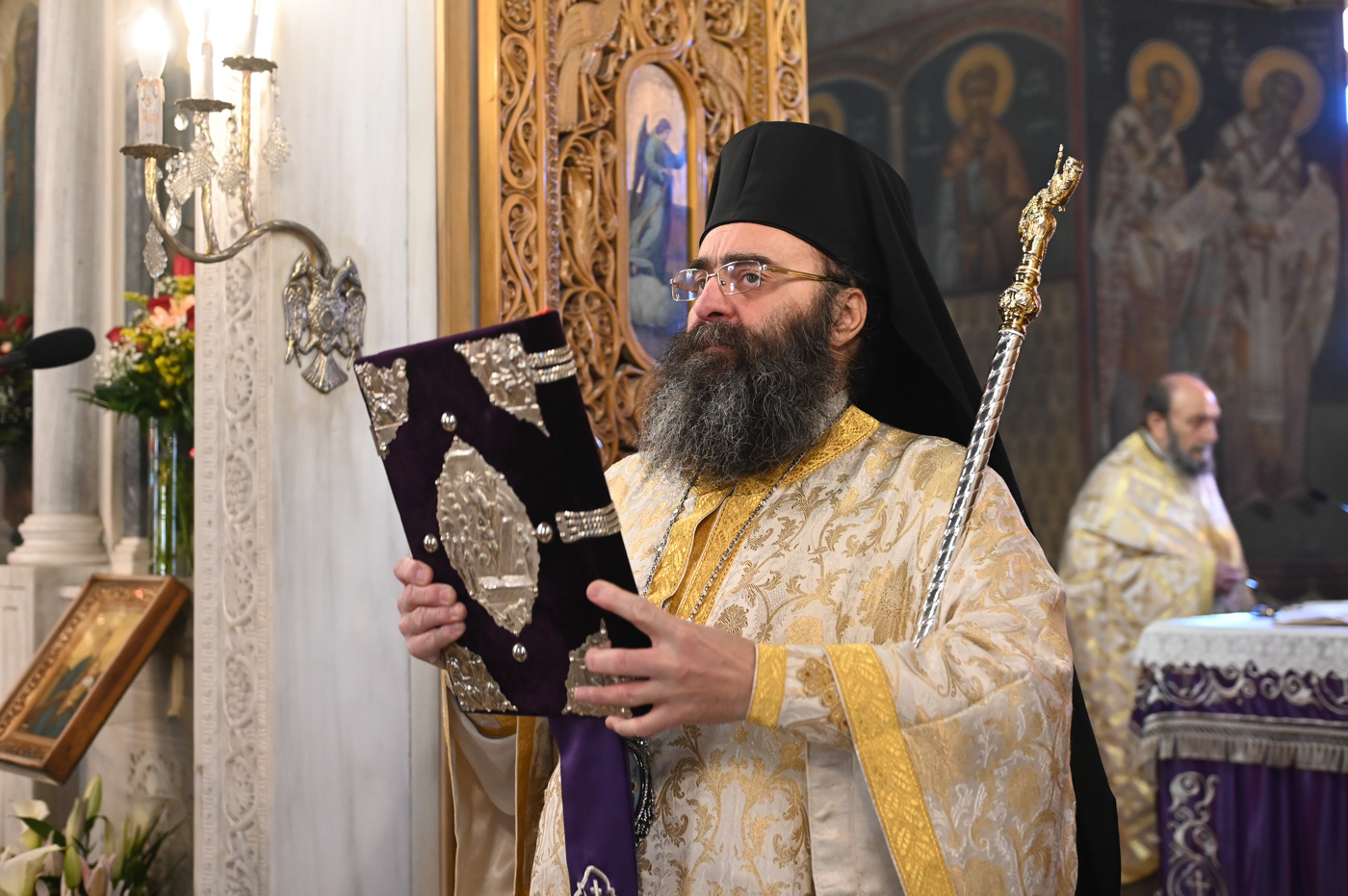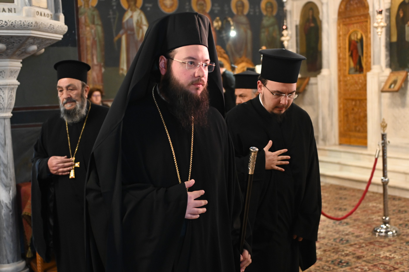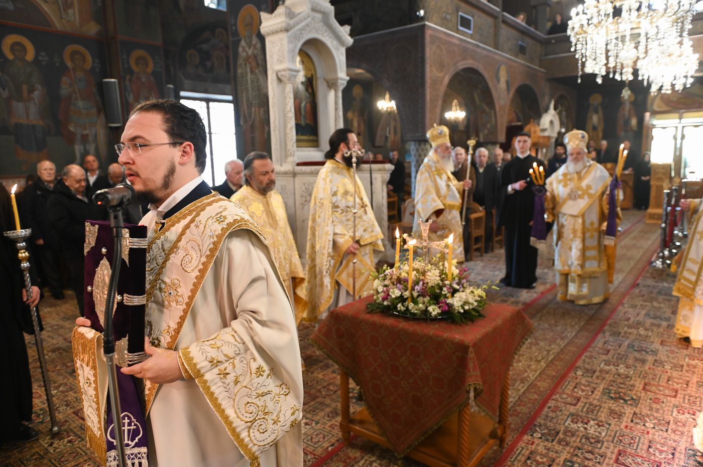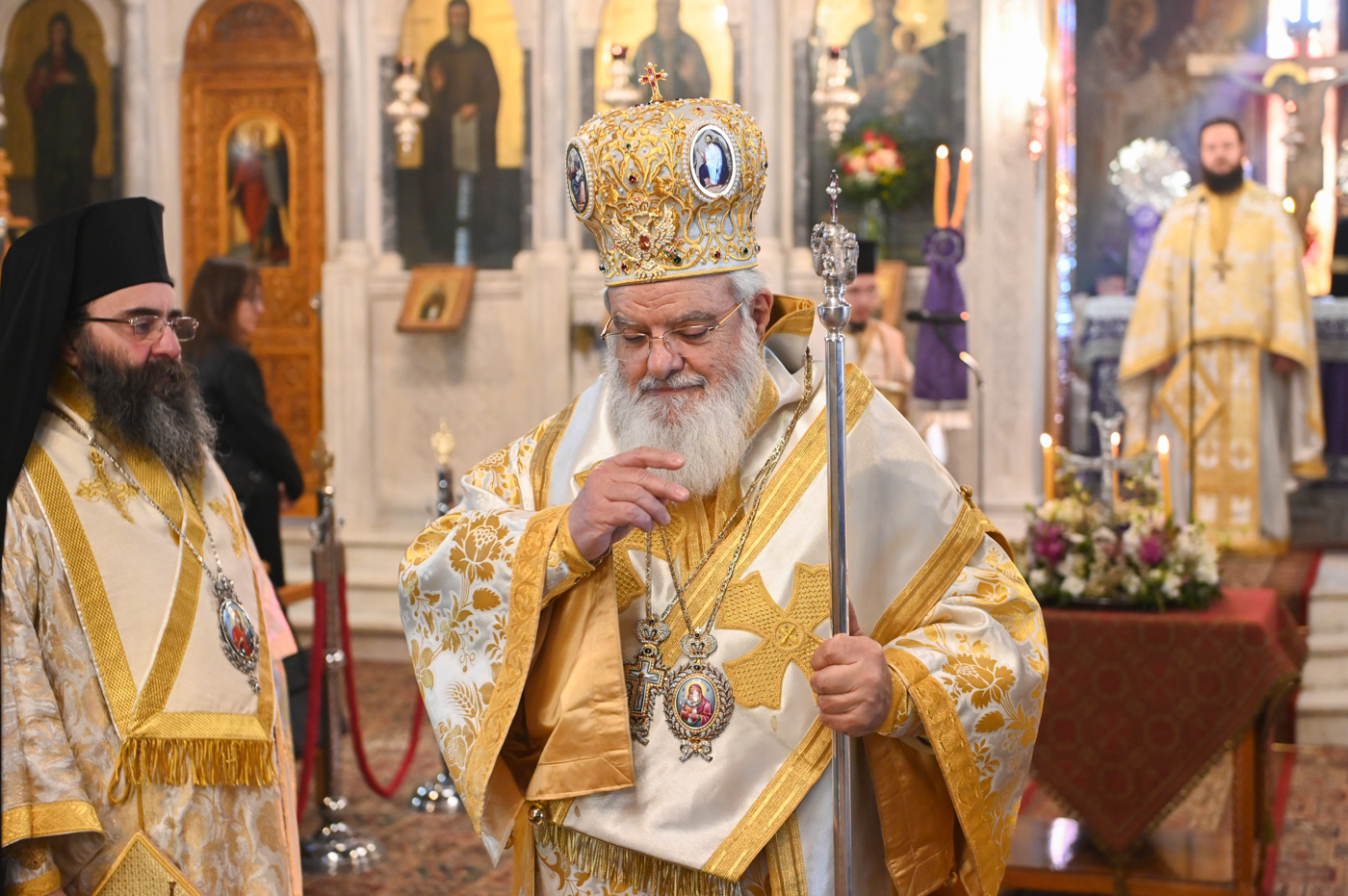 Κατά την Ακολουθία του Όρθρου και της Θείας Λειτουργίας προέστη ο Σεβ. Μητροπολίτης Βρεσθένης κ. Θεόκλητος, συλλειτουργούντων του Σεβ. Μητροπολίτη Μαντινείας και Κυνουρίας κ. Επιφανίου και του Θεοφιλ. Τεγέας κ. Θεοκλήτου.