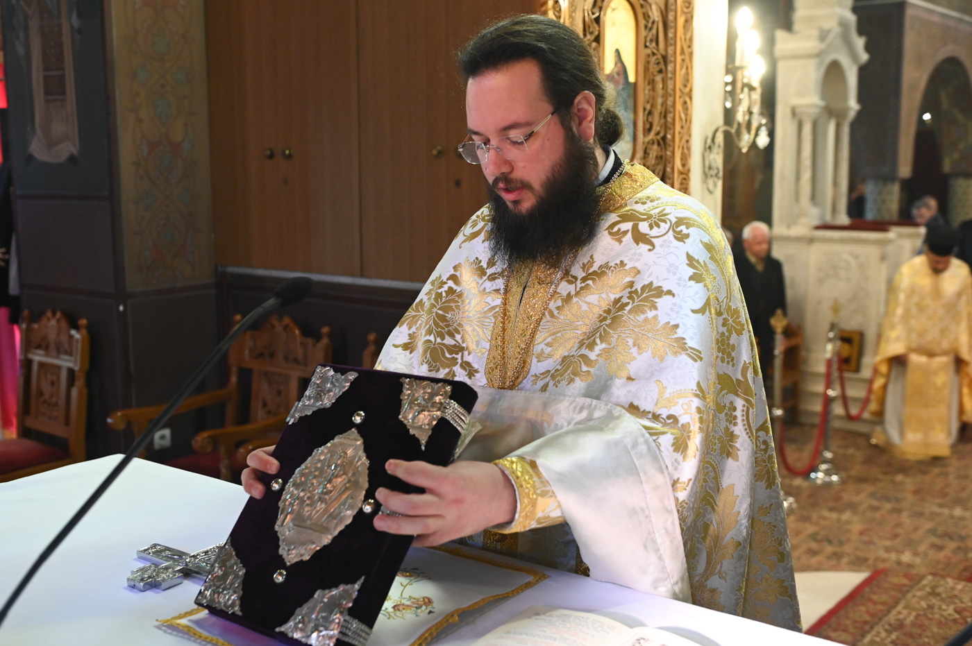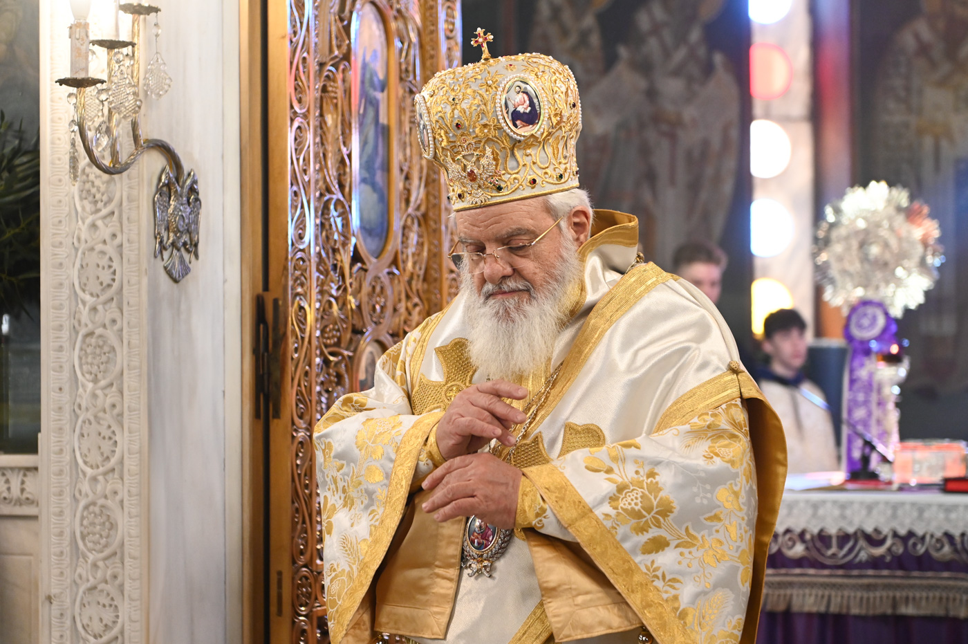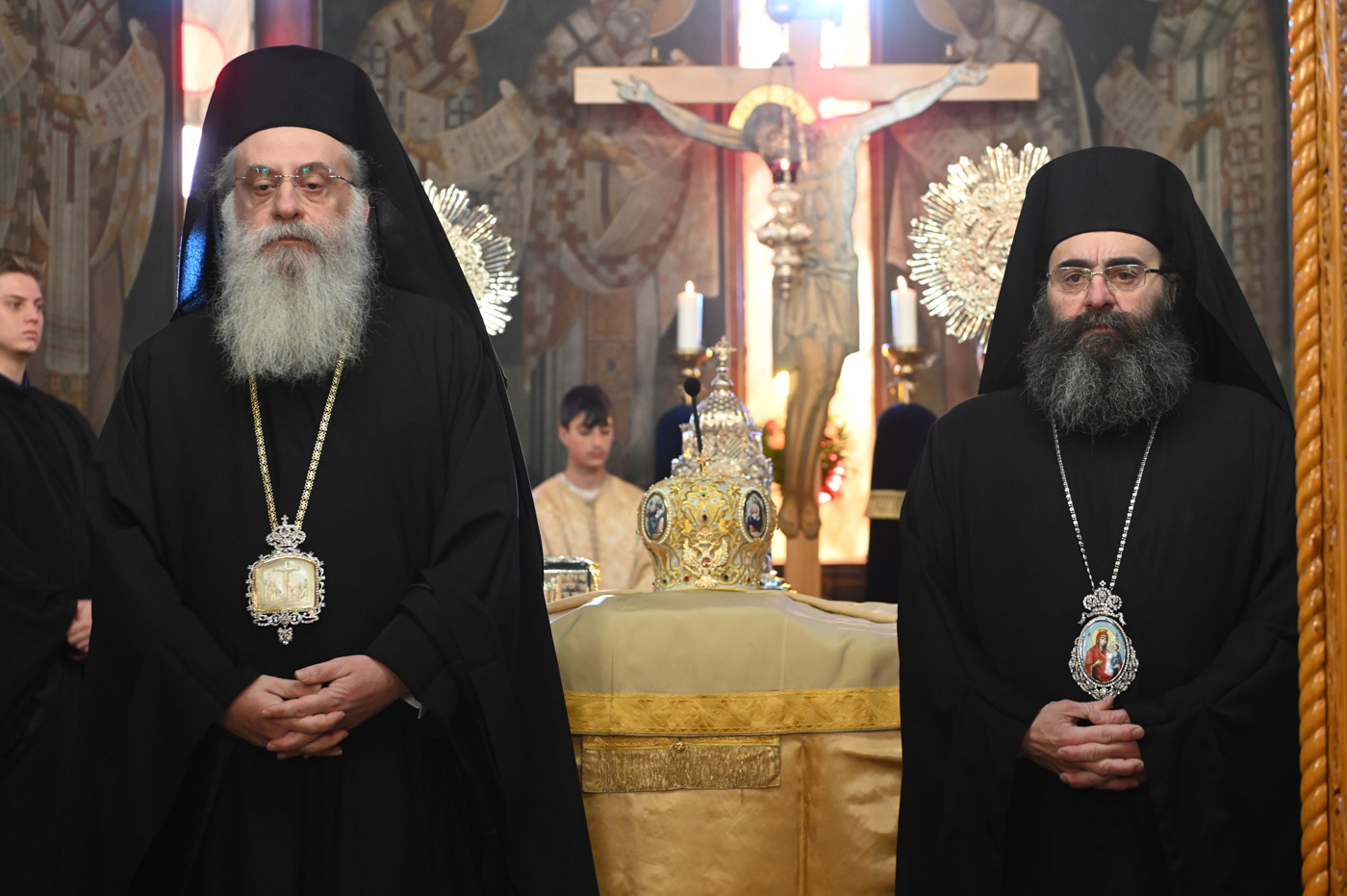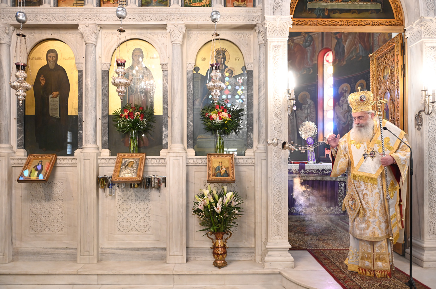 Κατά την Ακολουθία του Όρθρου και της Θείας Λειτουργίας προέστη ο Σεβ. Μητροπολίτης Βρεσθένης κ. Θεόκλητος, συλλειτουργούντων του Σεβ. Μητροπολίτη Μαντινείας και Κυνουρίας κ. Επιφανίου και του Θεοφιλ. Τεγέας κ. Θεοκλήτου.