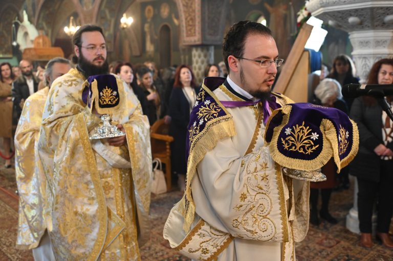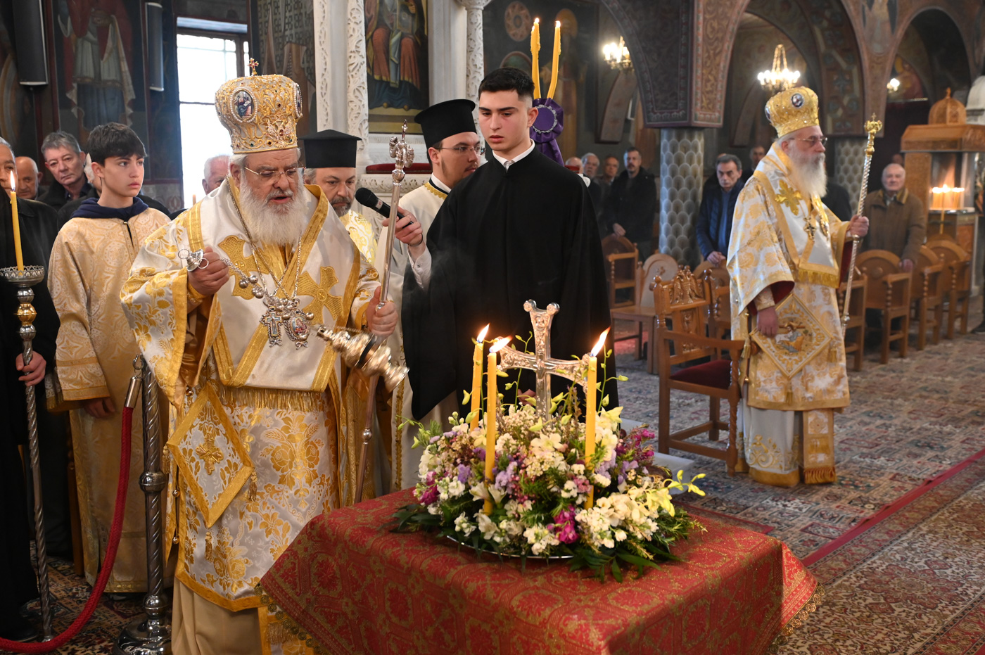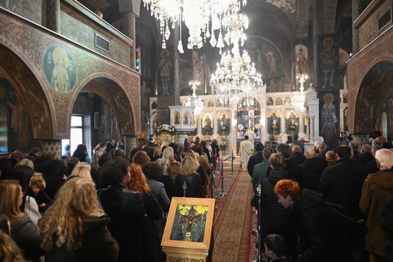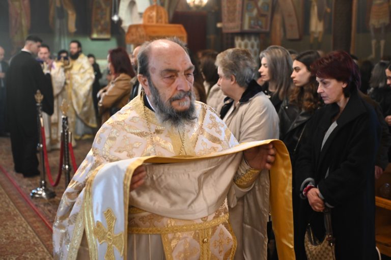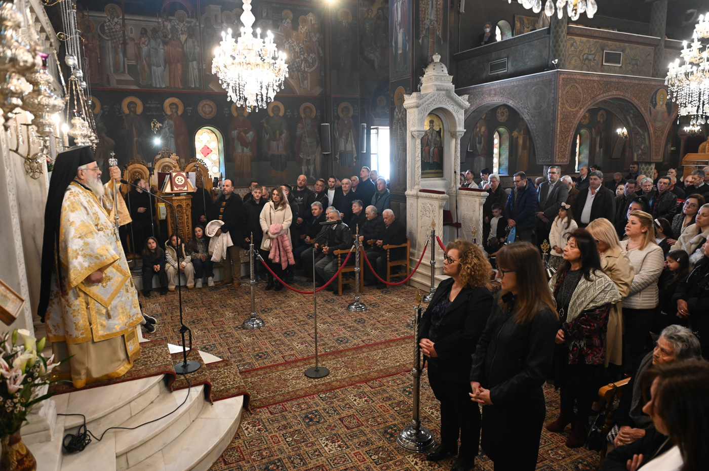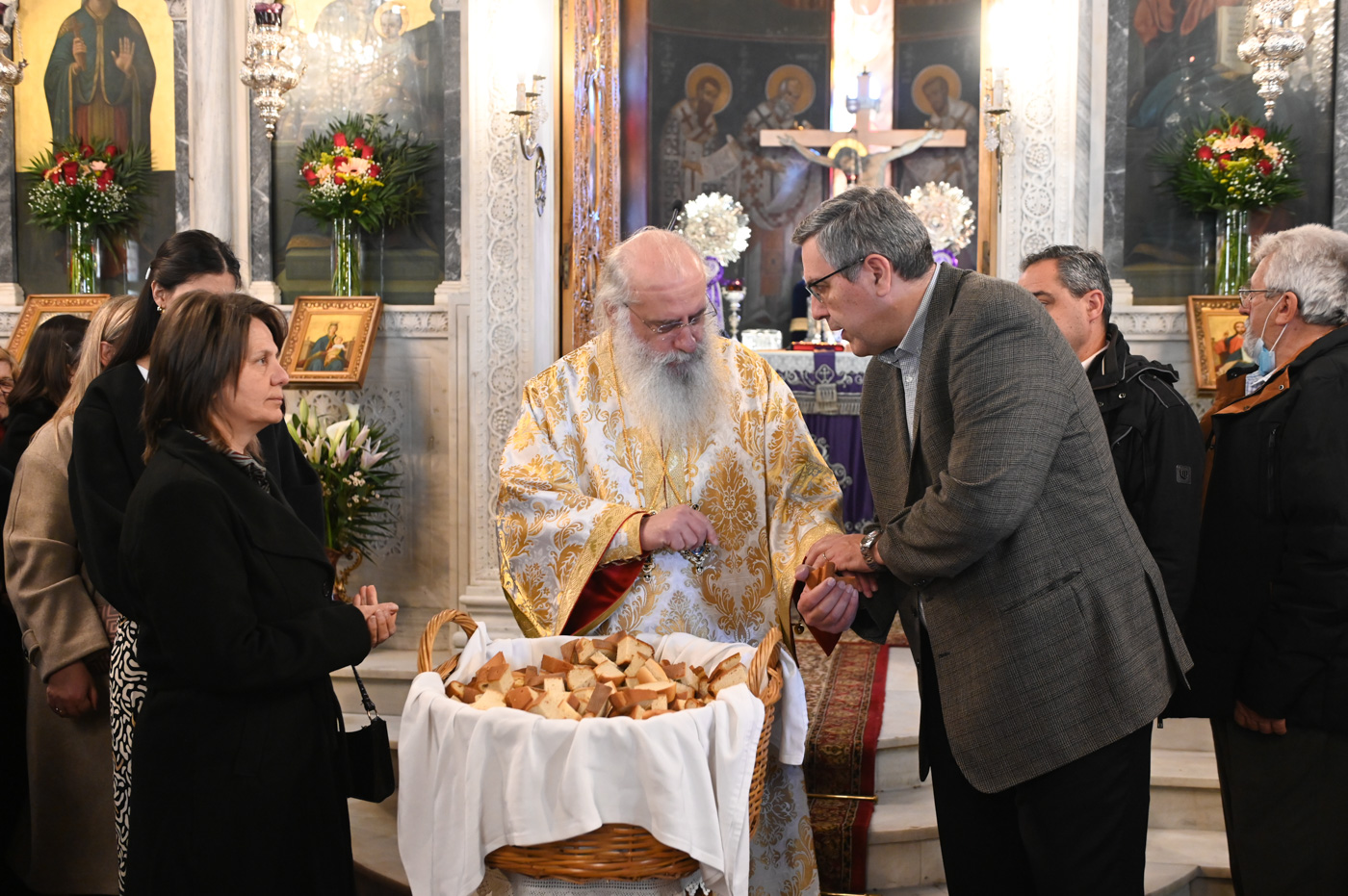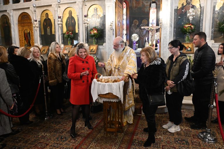 Πλήθος πιστών έφτασε στον Ιερό Ναό για να συμμετάσχει στην Θεία Λειτουργία, να προσκυνήσει τον Τίμιο Σταυρό και να λάβει από τον Ιερέα, εν είδει ευλογίας, τα καθιερωμένα άνθη.
