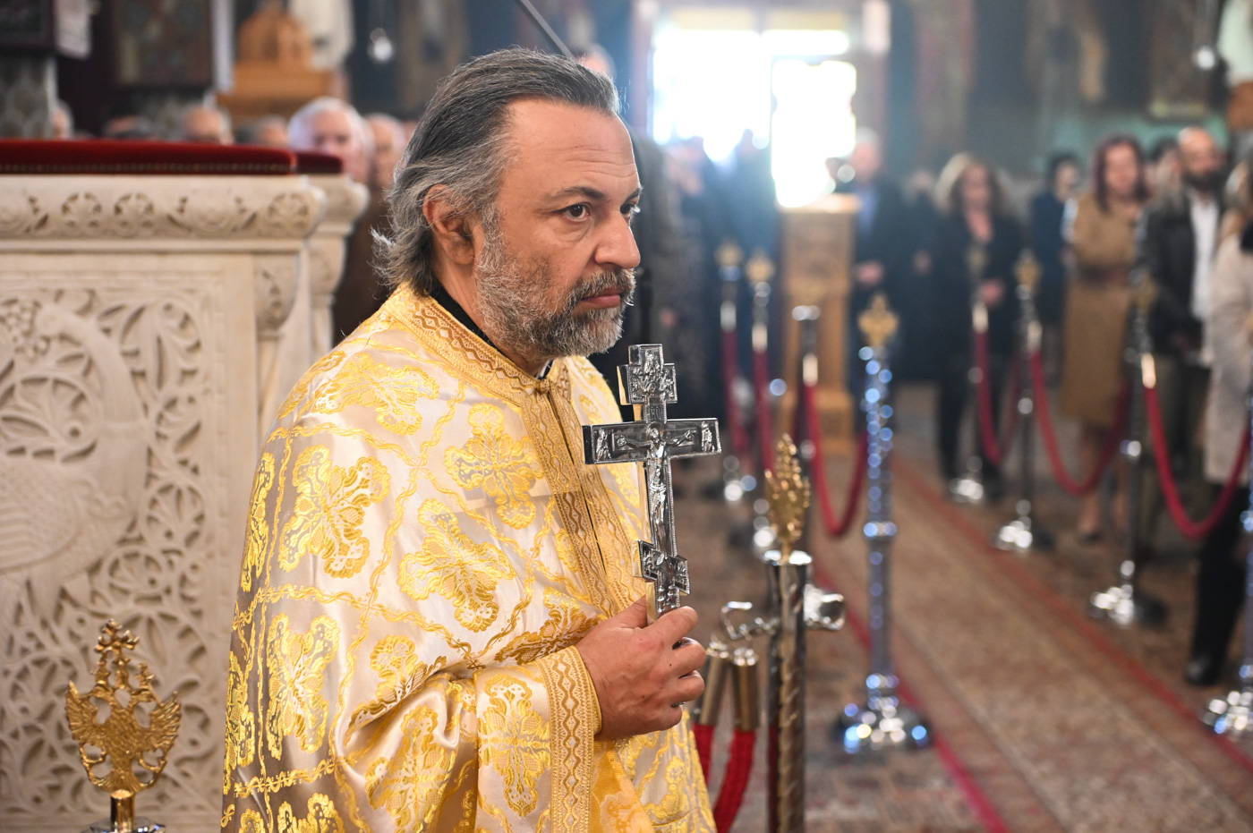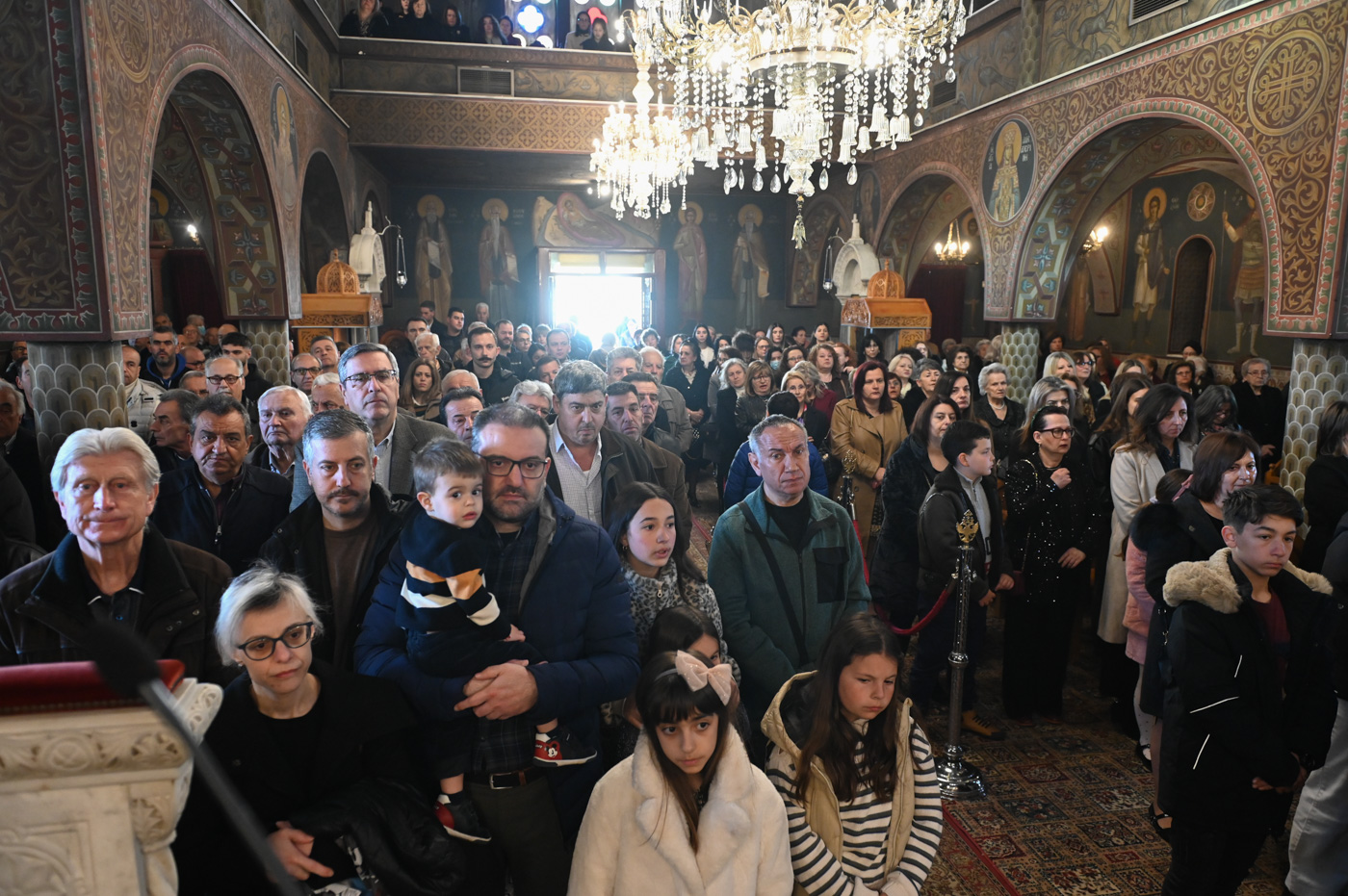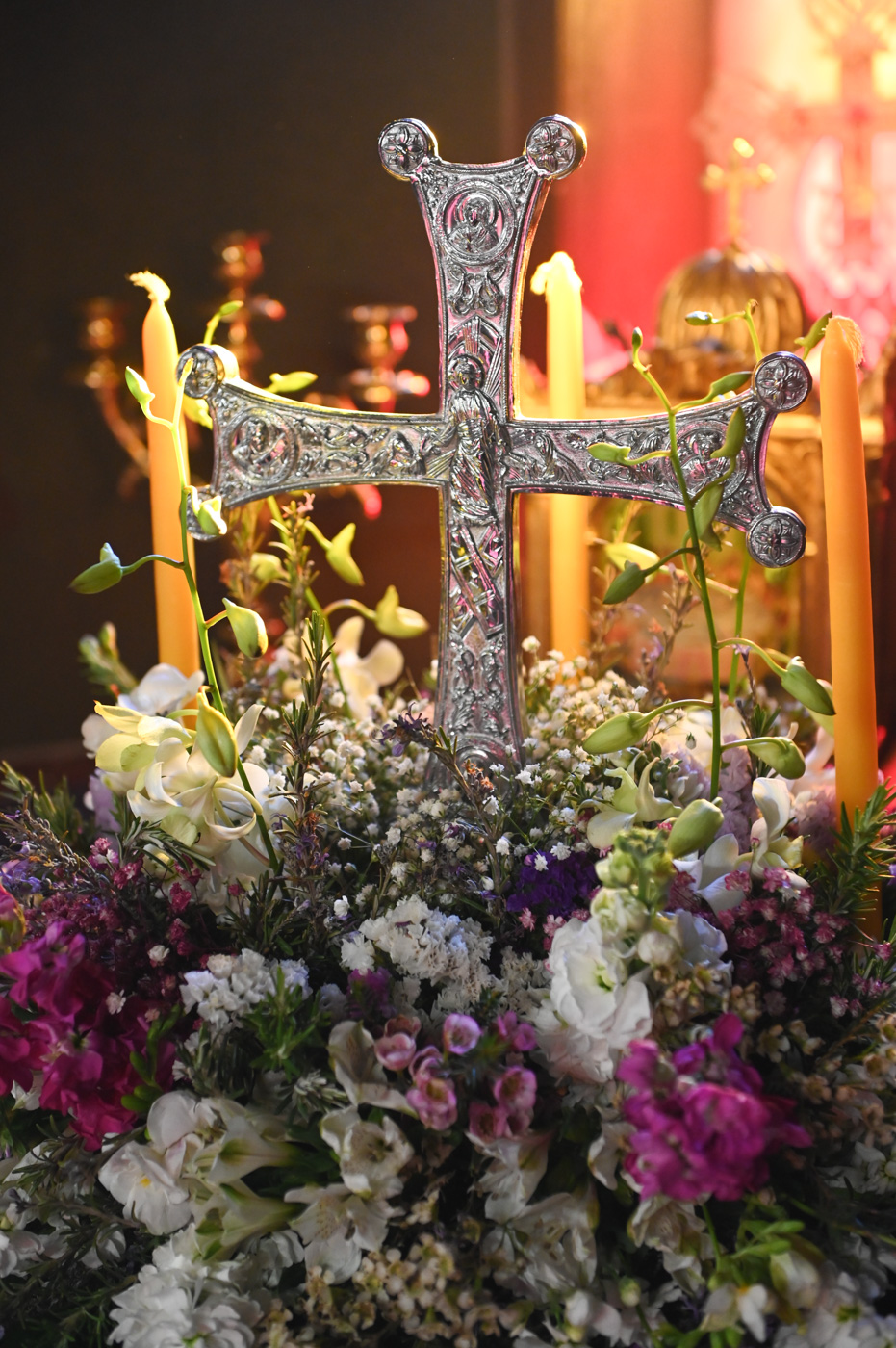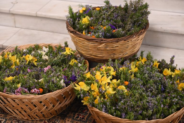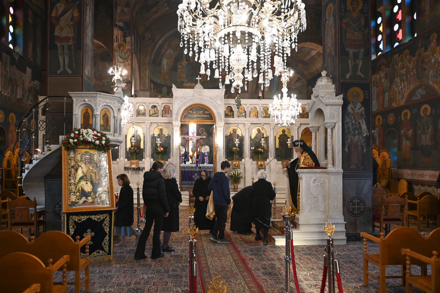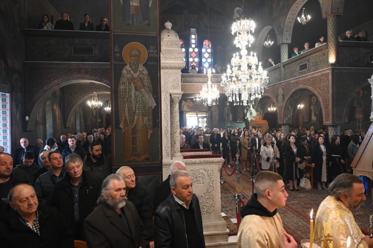 Πλήθος πιστών έφτασε στον Ιερό Ναό για να συμμετάσχει στην Θεία Λειτουργία, να προσκυνήσει τον Τίμιο Σταυρό και να λάβει από τον Ιερέα, εν είδει ευλογίας, τα καθιερωμένα άνθη.