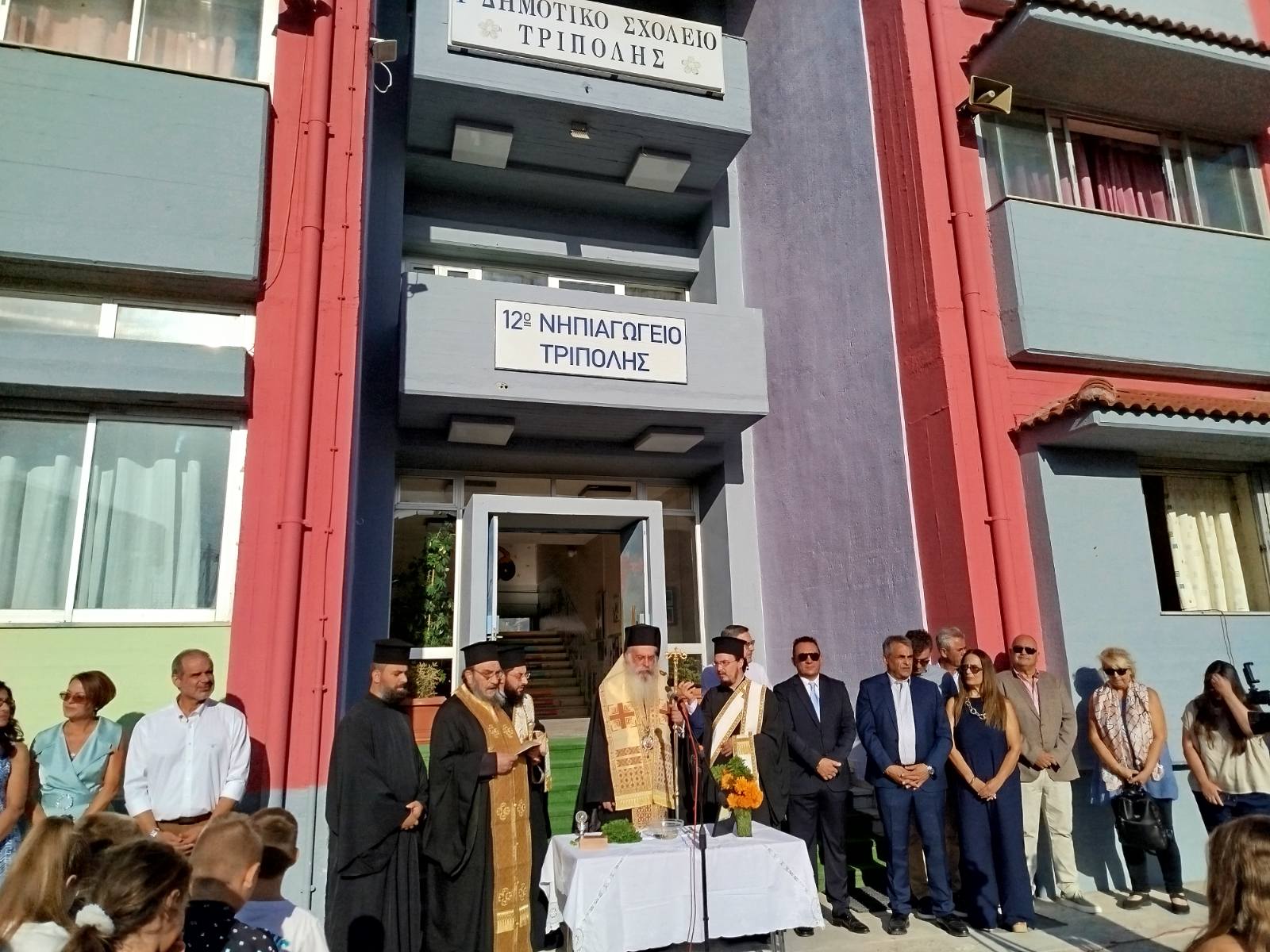Εναρκτήριοι Αγιασμοί τέλεσε σήμερα, Πέμπτη 11 Σεπτεμβρίου 2025, ο Σεβασμιώτατος Μητροπολίτης Μαντινείας και Κυνουρίας κ. Επιφάνιος για το νέο σχολικό έτος 2025 -2026 στο 1ο Δημοτικό Σχολείο, το 12ο Νηπιαγωγείο, το Μιστριώτειο 1ο Γυμνάσιο – Λύκειο και το Μουσικό Γυμνάσιο – Λύκειο στην Τρίπολη.